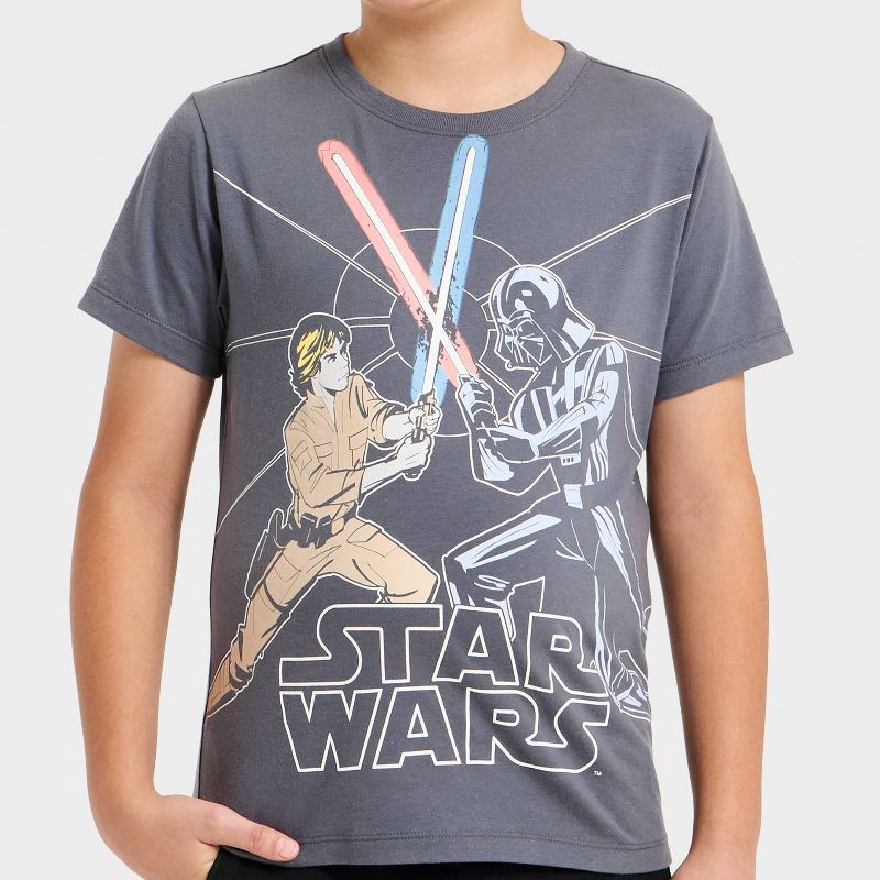 Boys' Star Wars Saber Battle Short Sleeve T-Shirt - Charcoal Gray XS