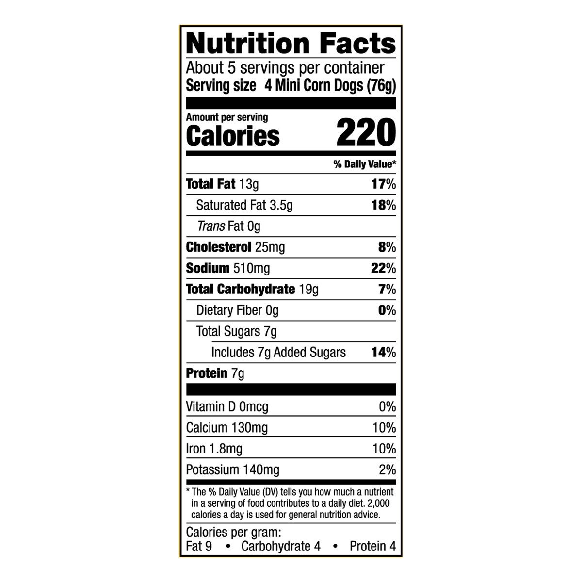 Bite-sized chicken franks dipped in batter. 7 g protein per serving. Family owned since 1939. 20 count approx. No added hormones (Federal regulations prohibit the use of hormones or steroids in chicke…