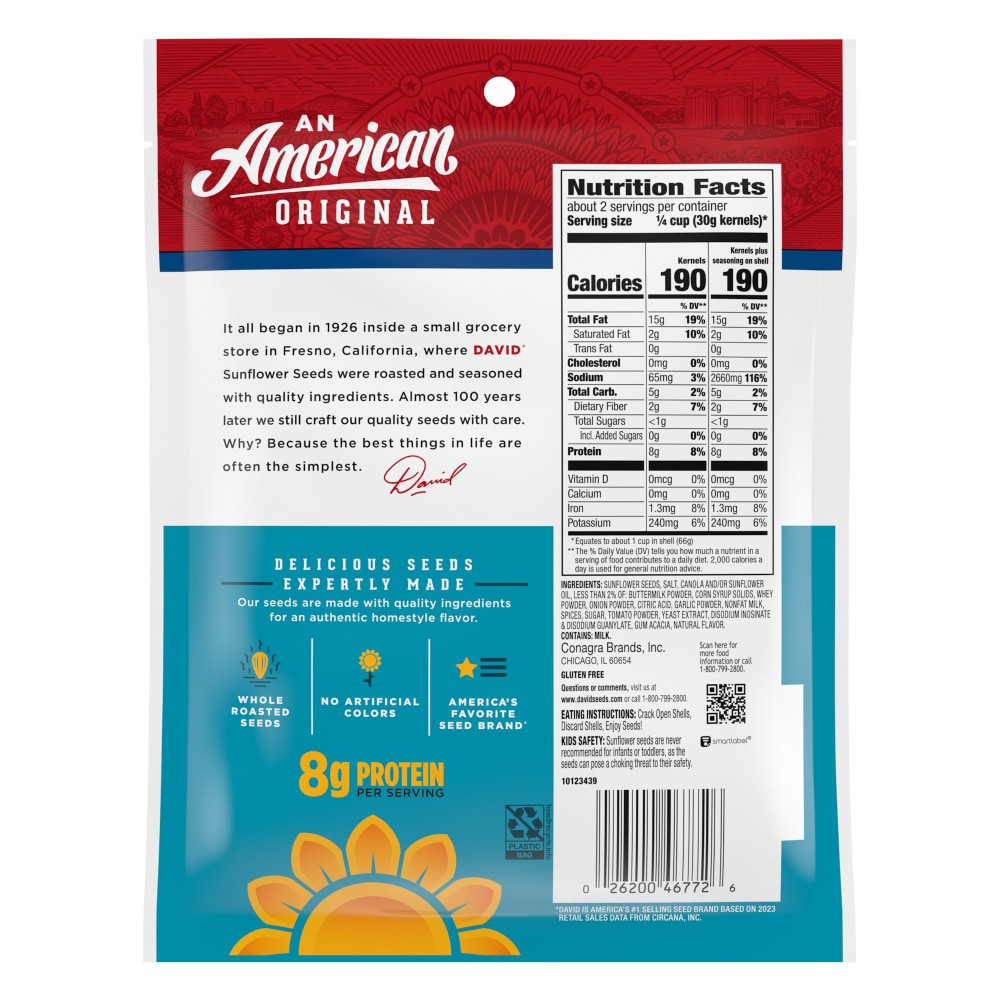 DAVID Jumbo Sunflower Seeds, Ranch Flavor, 5.250 OZ