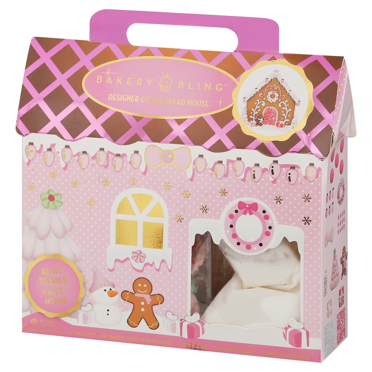 Designer gingerbread house. Ready to build. Makes 1 house. Women Owned. For every product sold, a donation is made to help transform the lives of women and children across the globe. Empowering She. W…