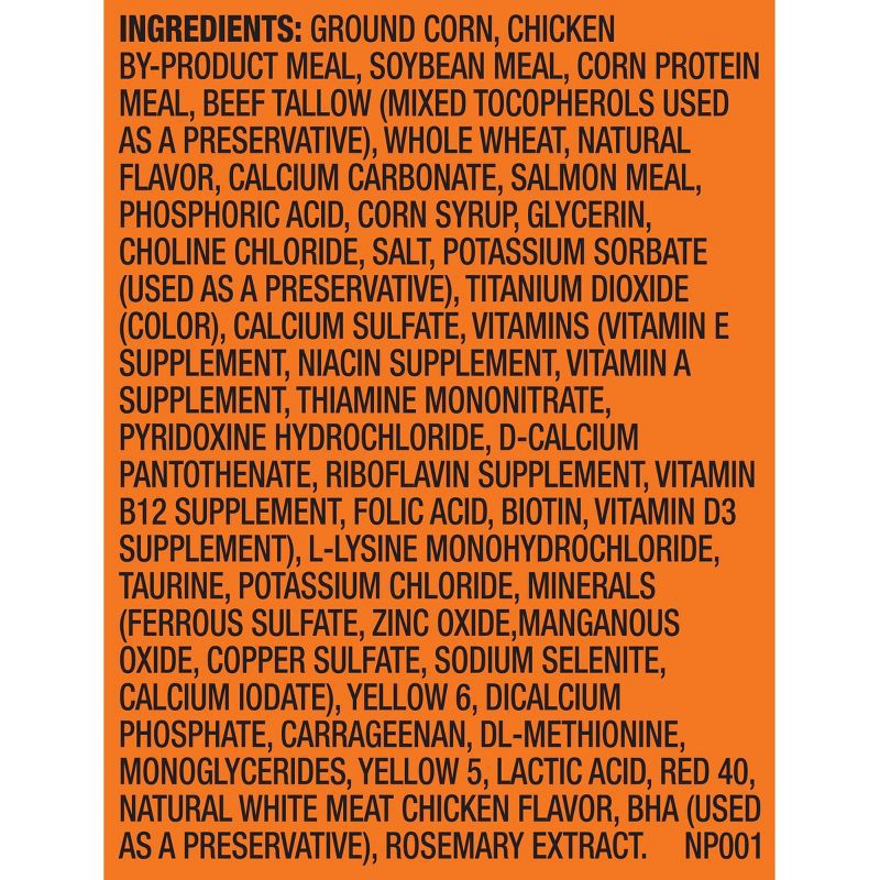 Ground Corn, Chicken By-Product Meal, Soybean Meal, Corn Protein Meal, Beef Tallow (Mixed Tocopherols Used as a Preservative), Whole Wheat, Natural Flavor, Calcium Carbonate, Salmon Meal, Phosphoric A…