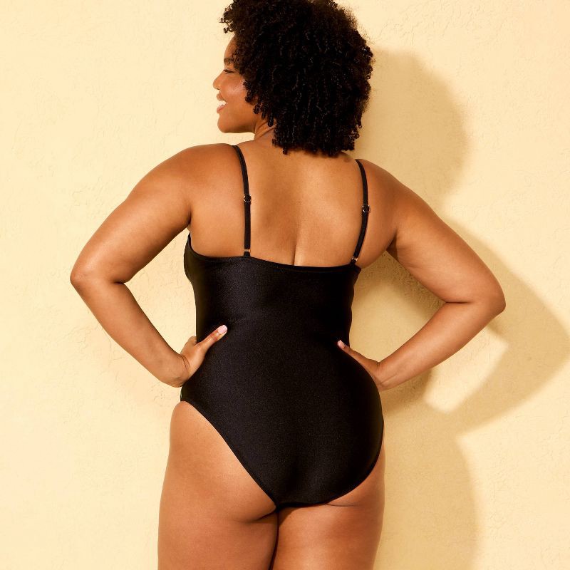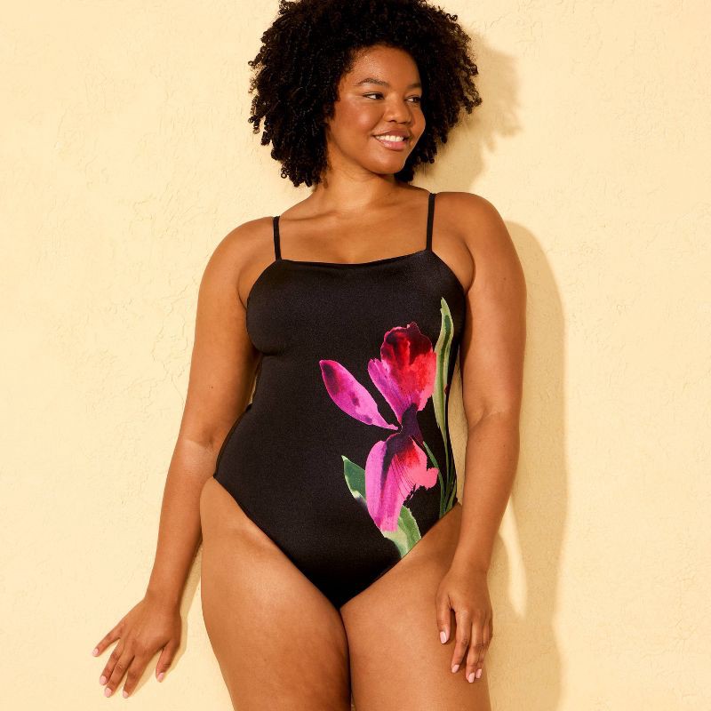 Women's Floral Print High Shine Straight Neck Medium Coverage One Piece Swimsuit - Shade & Shore™ Black S