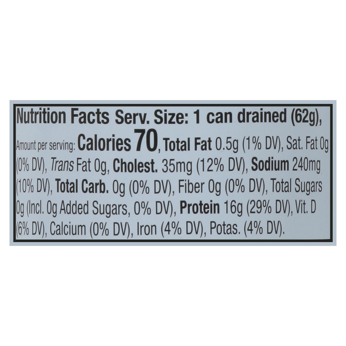 Light Tuna, Water, Vegetable Broth, Sea Salt.
