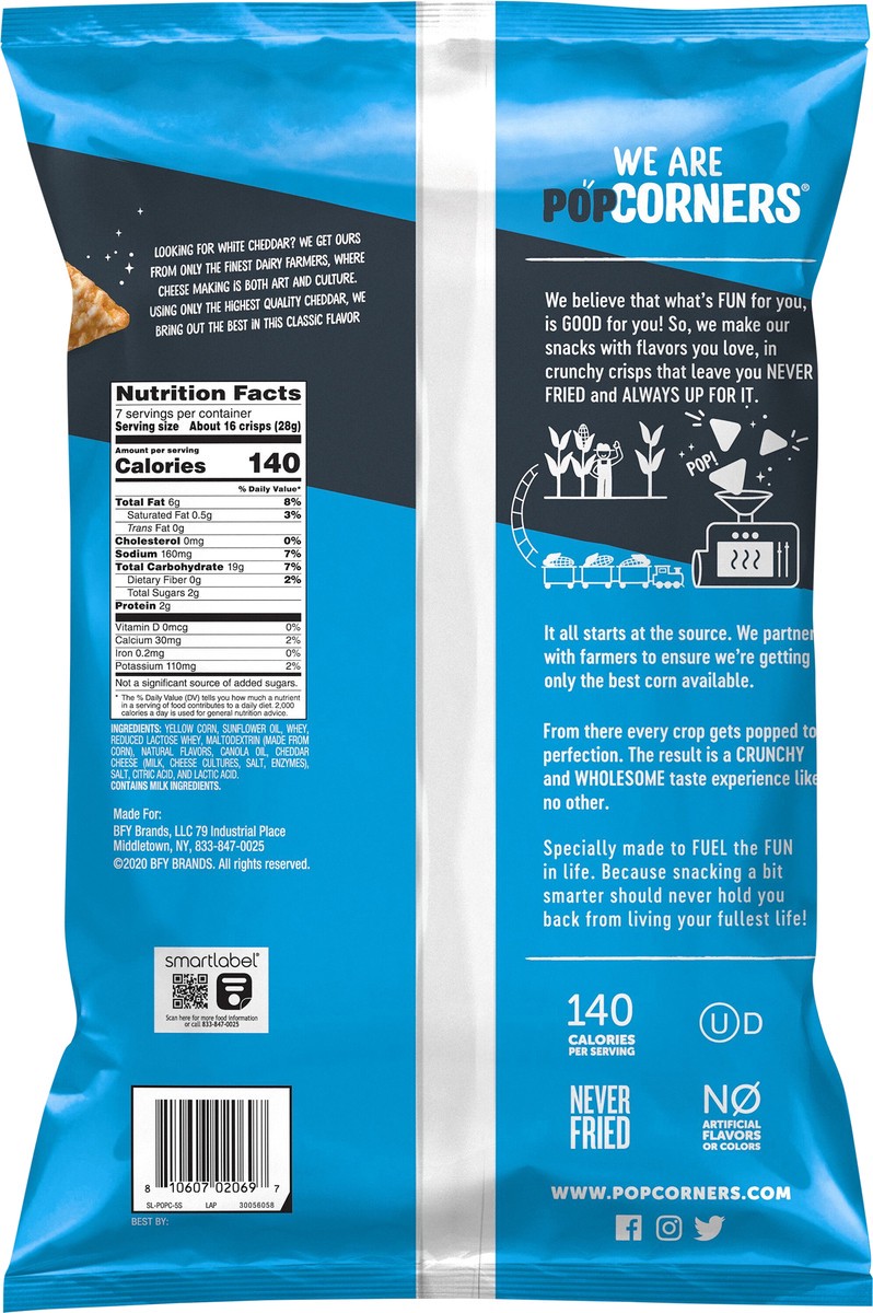 Popcorners Popped Corn Chips Crispy & Crunchy White Cheddar Bag - 7 Oz