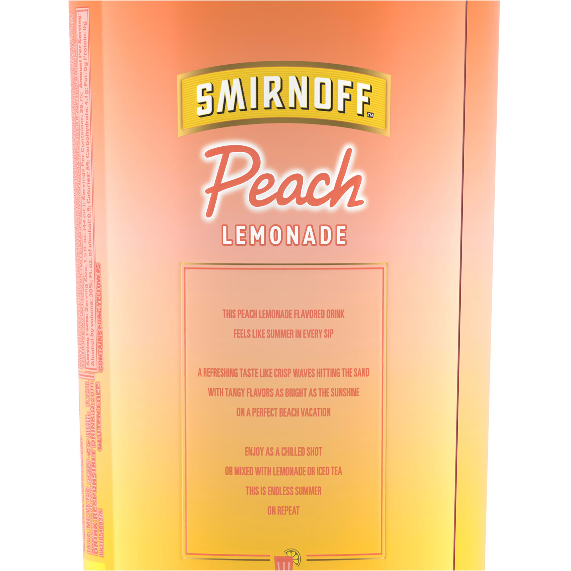 Whether you''re enjoying a long day by the pool or a hot summer night, Smirnoff Peach Lemonade is the perfect flavored drink for your next cocktail party. It's bright peach notes over sweet and refres…