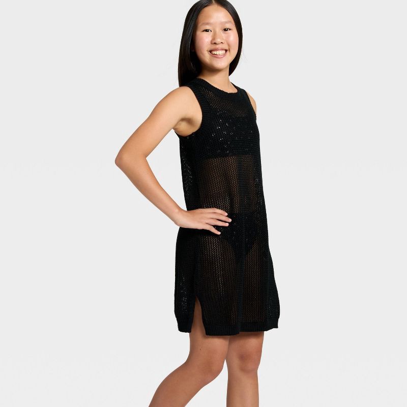 slide 1 of 3, Girls' Solid Crochet Dress Swimsuit Cover-Up - art class™ Black XL, 1 ct