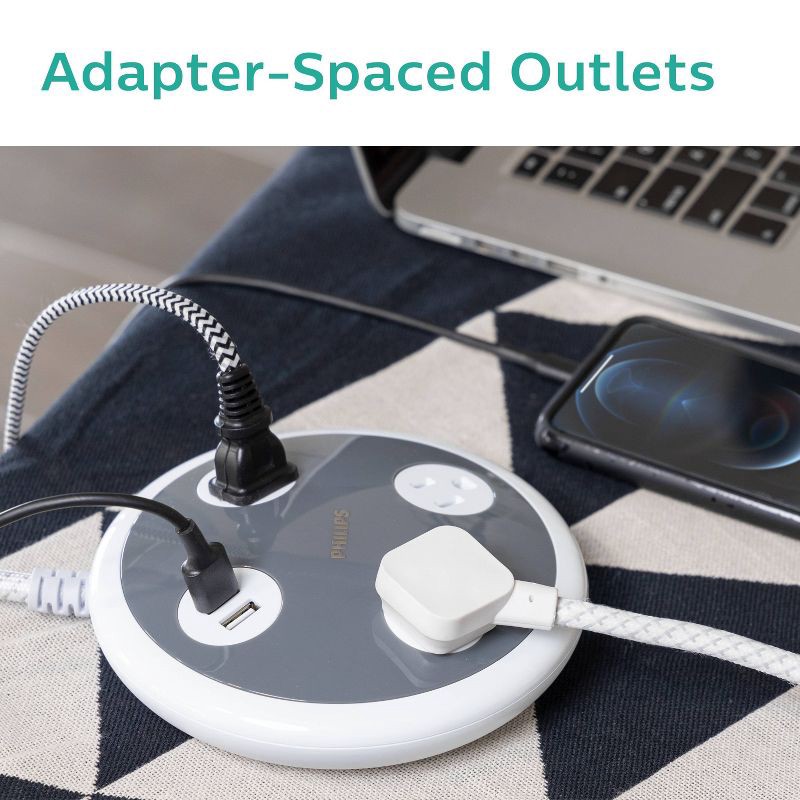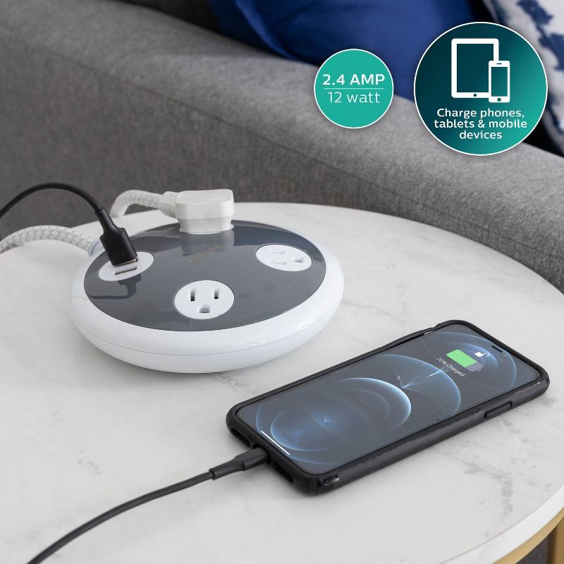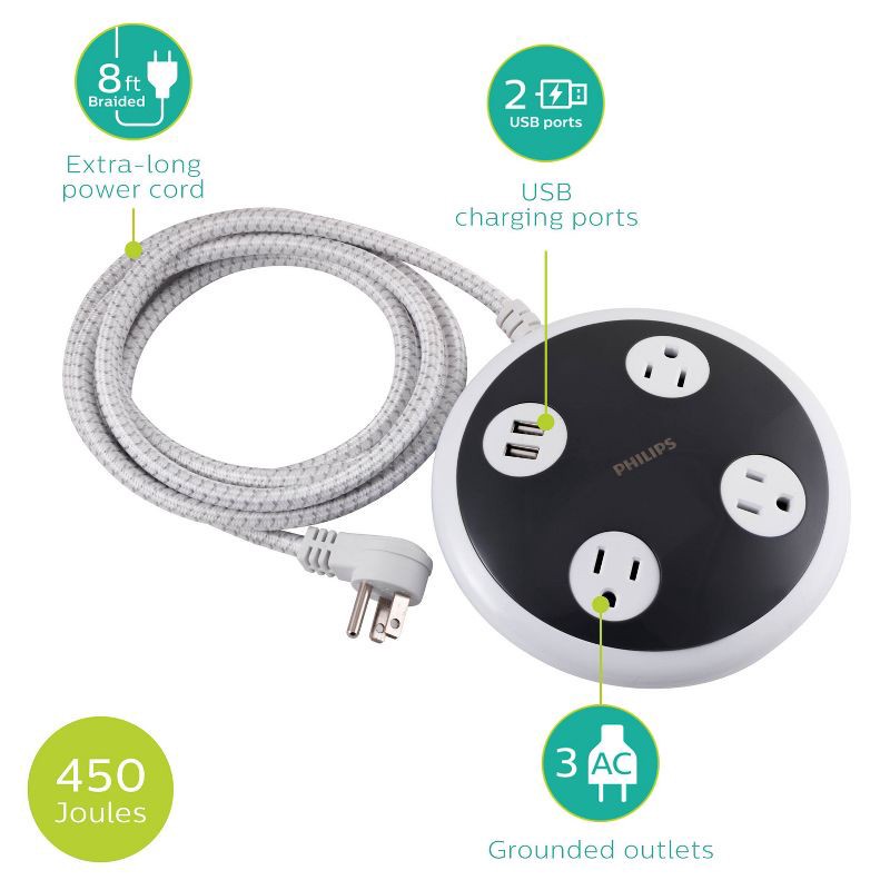 Your power does more with the Philips 3-Outlet, 2-USB Surge Orb. Converting one outlet into three grounded AC outlets and two standard USB ports with a combined 2.4A of charging power, this powerful e…