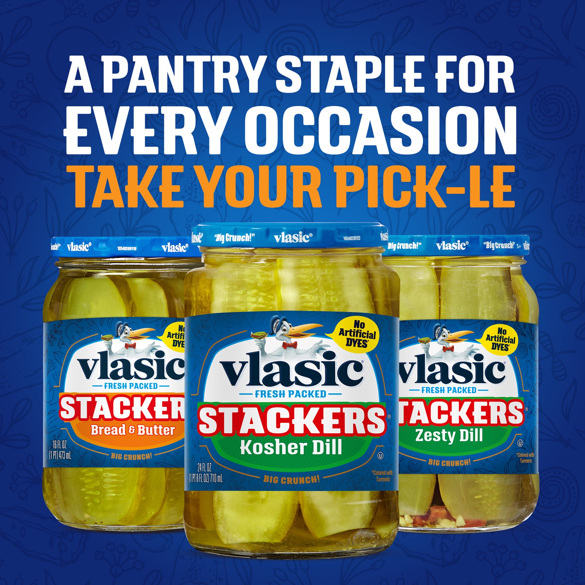 Vlasic Stackers Kosher Dill Pickles kick up your sandwiches with sliced dill pickles that are full of classic flavor. All included ingredients, along with the Vlasic secret pickling recipe, make theseā¦