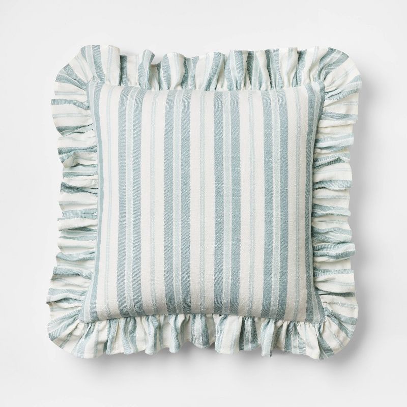 Threshold designed w/Studio McGee Square Woven Stripe Throw Pillow with Ruffle Blue/Ivory - Threshold™ designed with Studio McGee