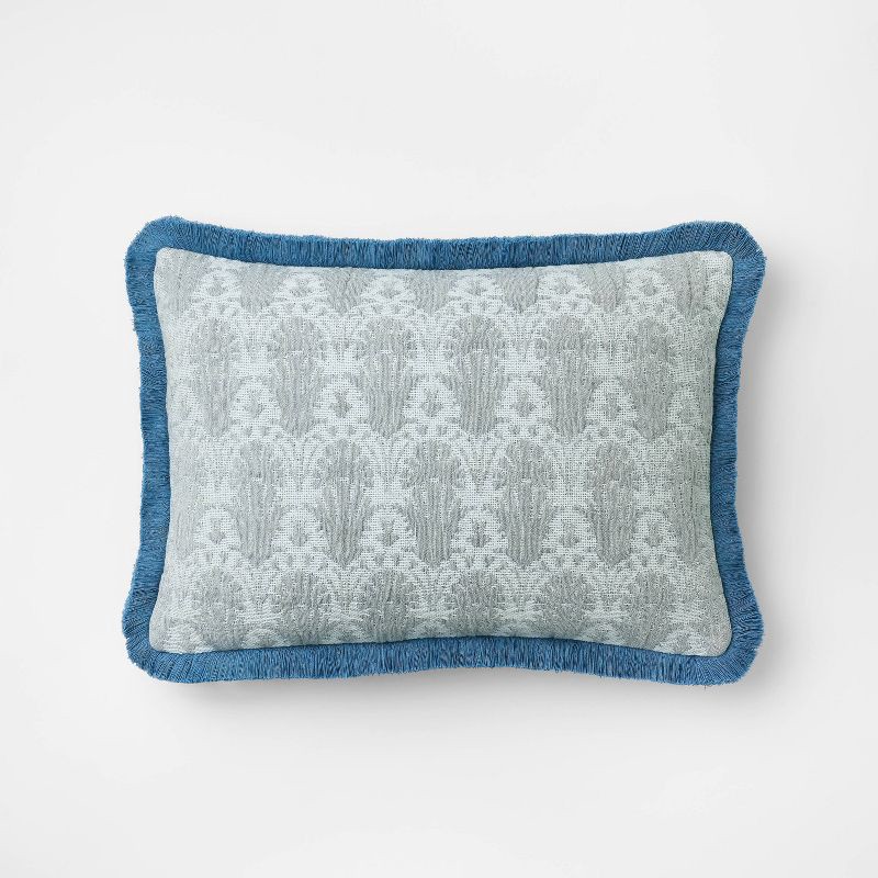 Threshold designed w/Studio McGee Lumbar Woven Shell Block with Fringe Edge Throw Pillow Bue - Threshold™ designed with Studio McGee