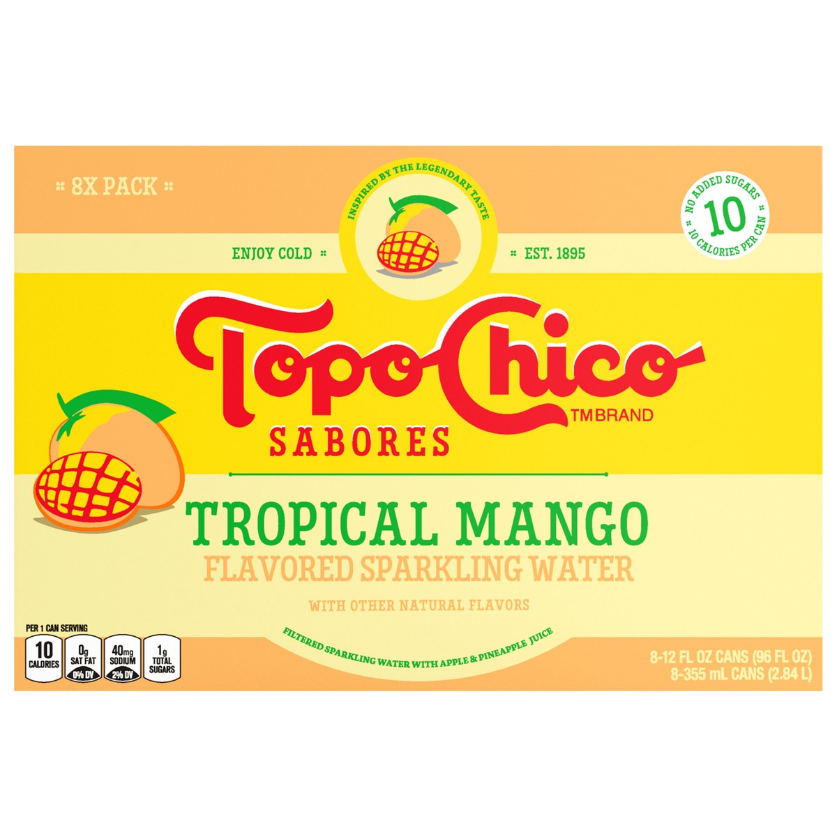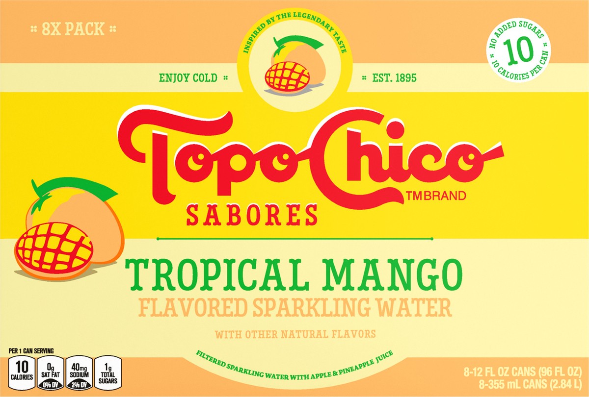 Topo Chico Sabores Tropical Mango Cans, 12 fl oz, 8 Pack