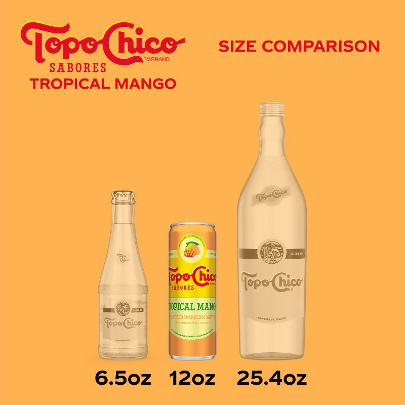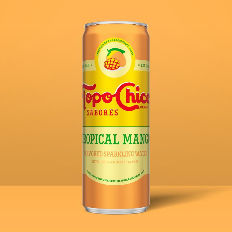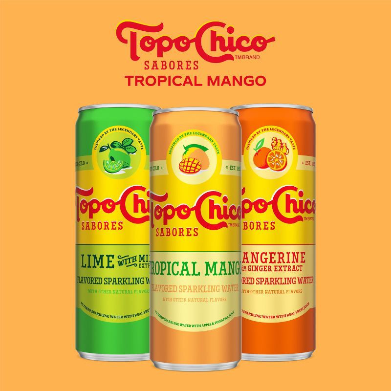 - Experience the refreshing blend of tropical mango flavors in Topo Chico Sabores flavored sparkling water, offering a vibrant, delicious discovery in every sip