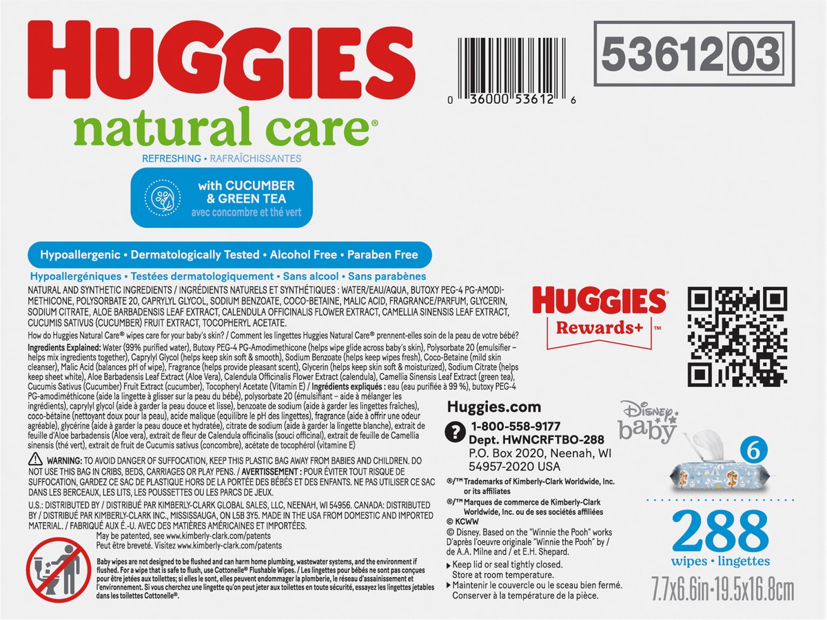 Huggies Natural Care Scented Cucumber Baby Wipes Flip-Top Packs 288 Wipes Total - 6 Count