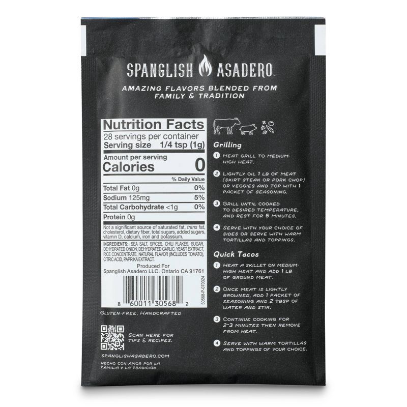 Sea Salt, Spices, Chili Flakes, Sugar, Dehydrated Onion, Dehydrated Garlic, Yeast Extract, Rice Concentrate, Natural Flavor (Includes Tomato), Citric Acid, Paprika Extract.