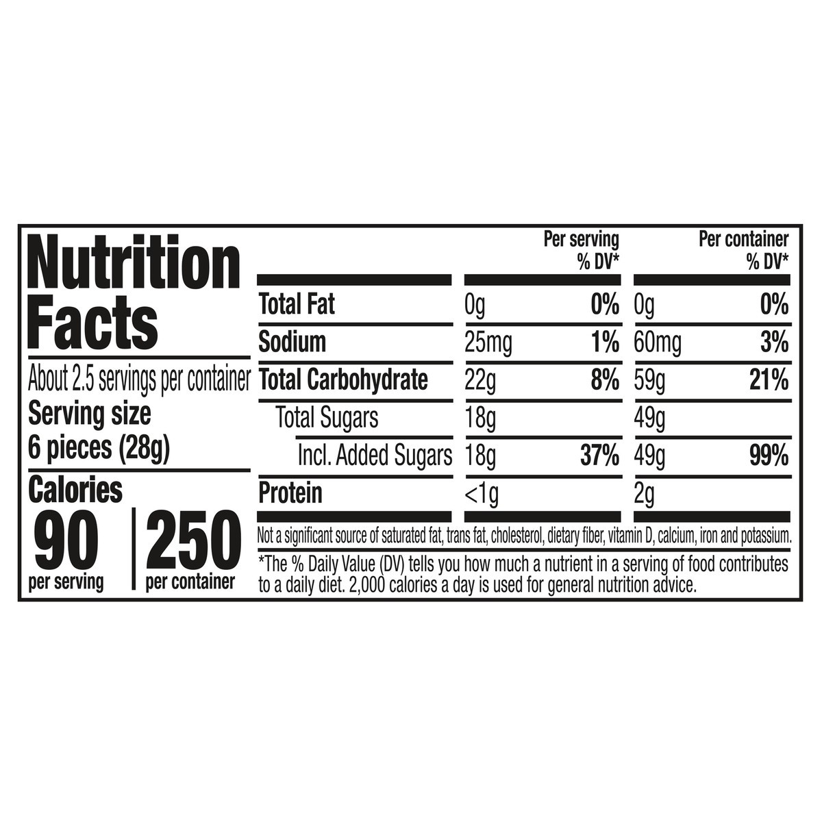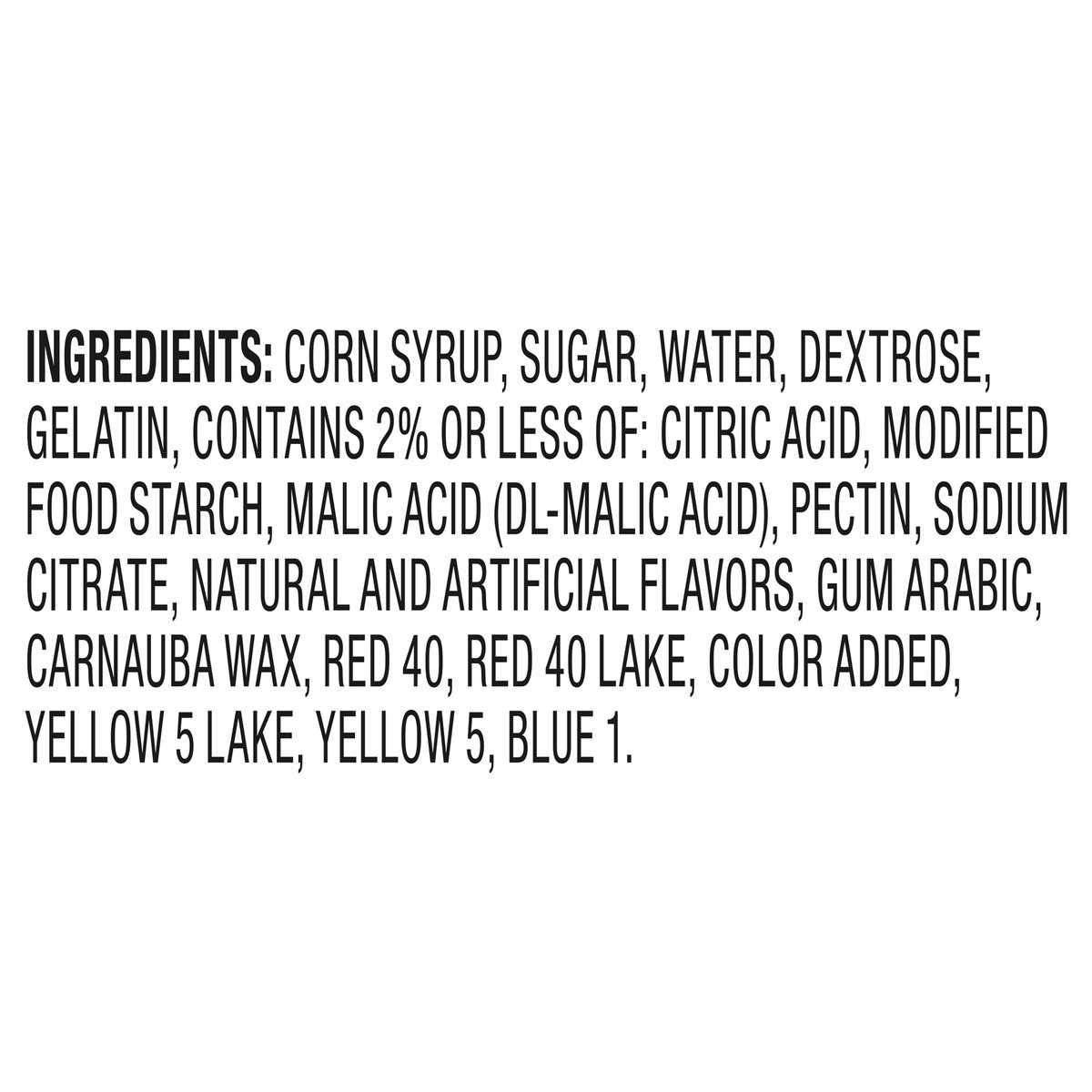 Corn Syrup, Sugar, Water, Dextrose, Gelatin, Contains 2% or Less of: Citric Acid, Modified Food Starch, Malic Acid (DL-Malic Acid), Pectin, Sodium Citrate, Natural and Artificial Flavors, Gum Arabic, …