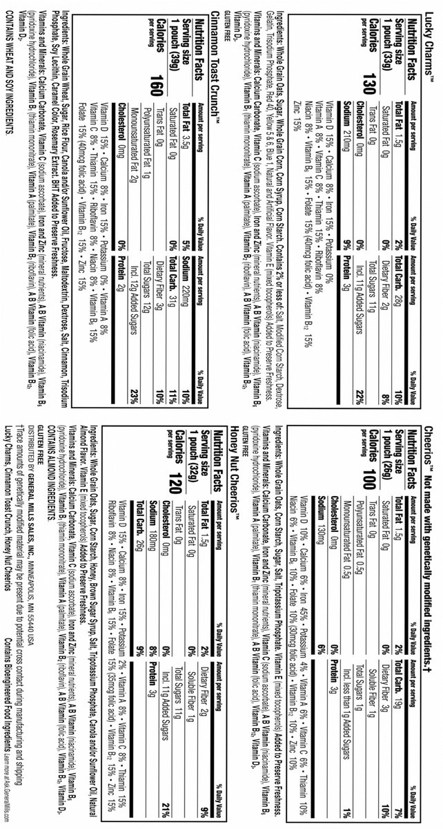 Cinnamon Toast Crunch, Cheerios, Lucky Charms