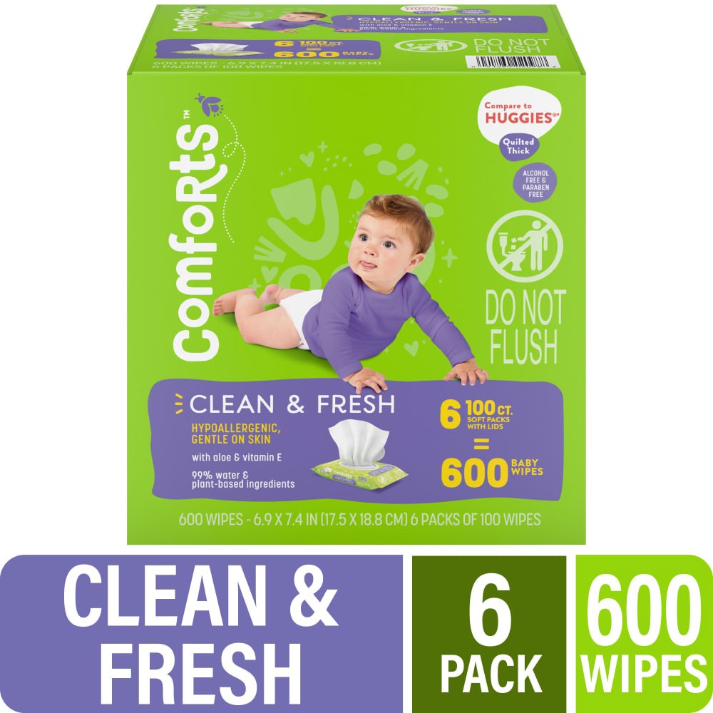 Comforts Clean Scent Baby Wipes 6Pk/100 Ct