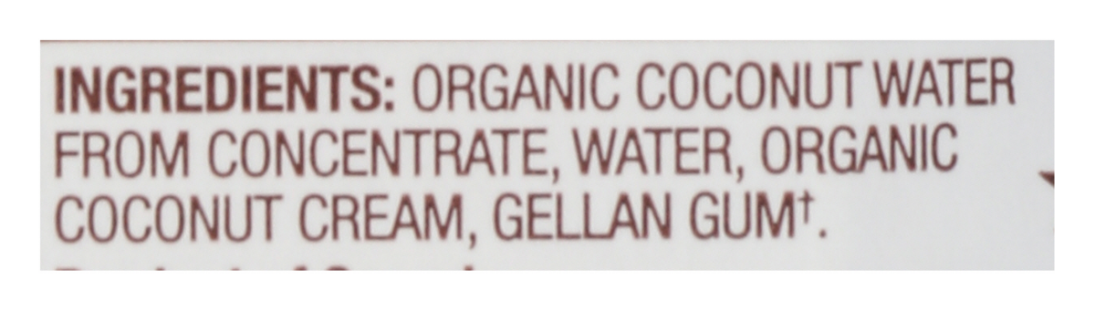 Organic Coconut Water from Concentrate, Water, Organic Coconut Cream, Gellan Gum(a). (a) Gellan Gum is Derived from a Natural Source and Added for Consistency in Texture.