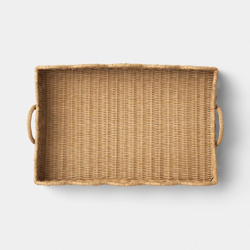 Bring a touch of timeless style to your decor with this Scallop-Edge Wicker Tray from Threshold™. This wicker tray is made of rattan and features raised scalloped edges to add elegant charm to your sp…