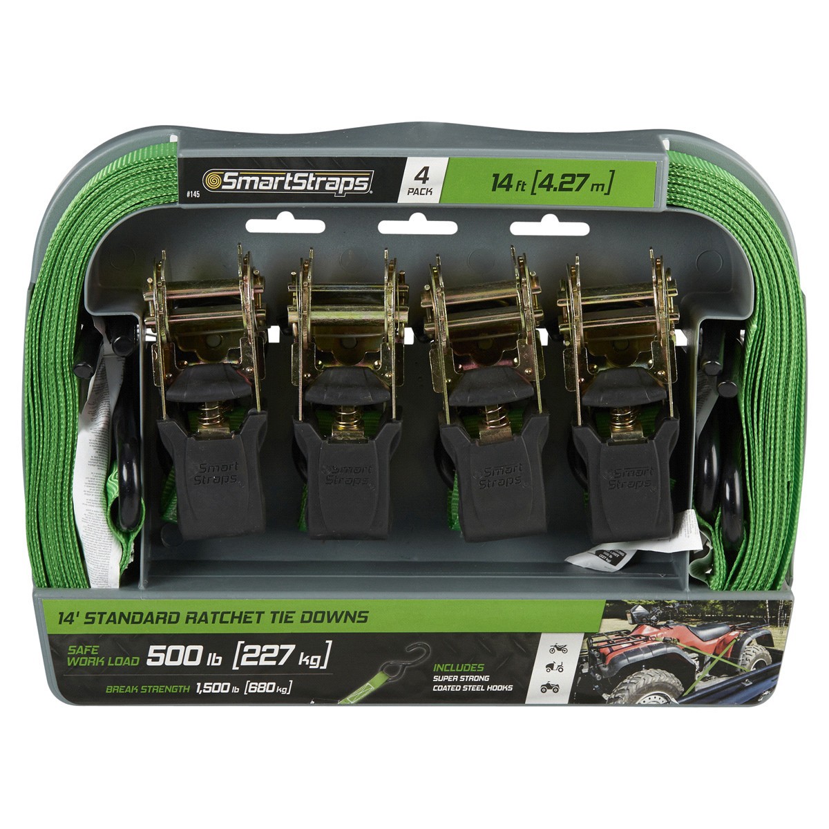 SmartStraps Padded Ratchet Tie Down, Green, 14 ft
