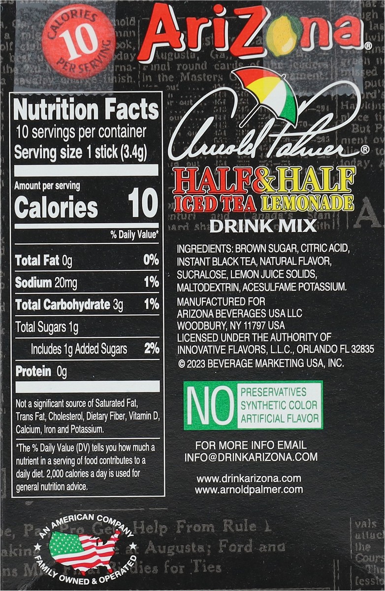 AriZona Half & Half Iced Tea Lemonade Drink Mix, 10 - 0.12 oz Sticks