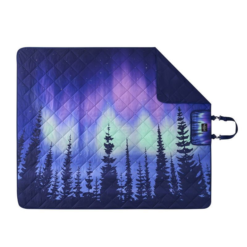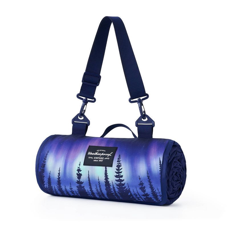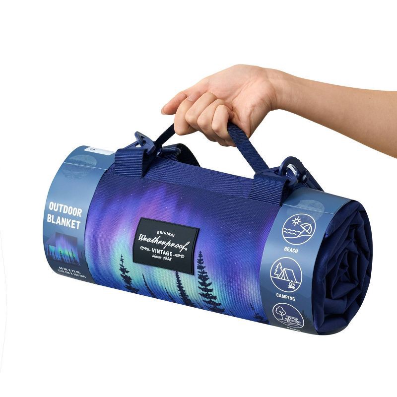 - Weatherproof Vintage Outdoor Picnic Blanket with Strap & Velcro Closure, Roll-Up Beach or Camping Blanket, Blue Star & Forest Print, 60"x72"