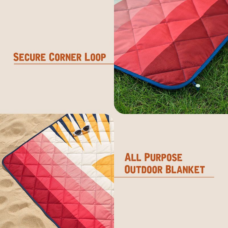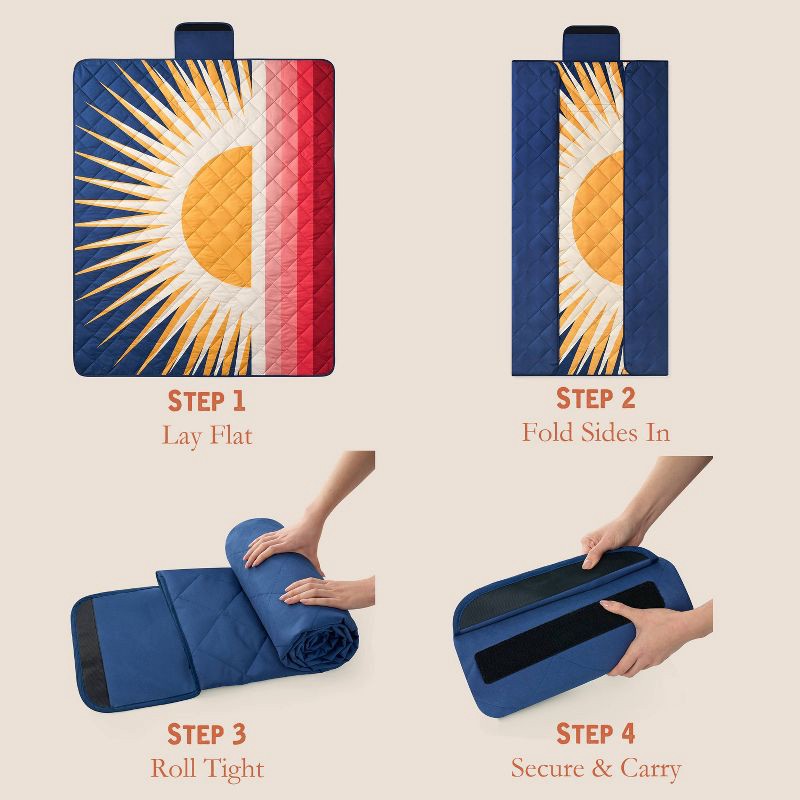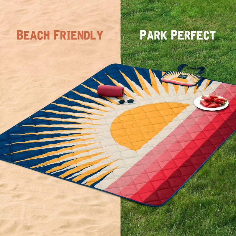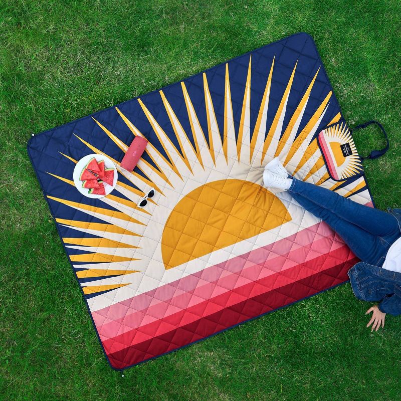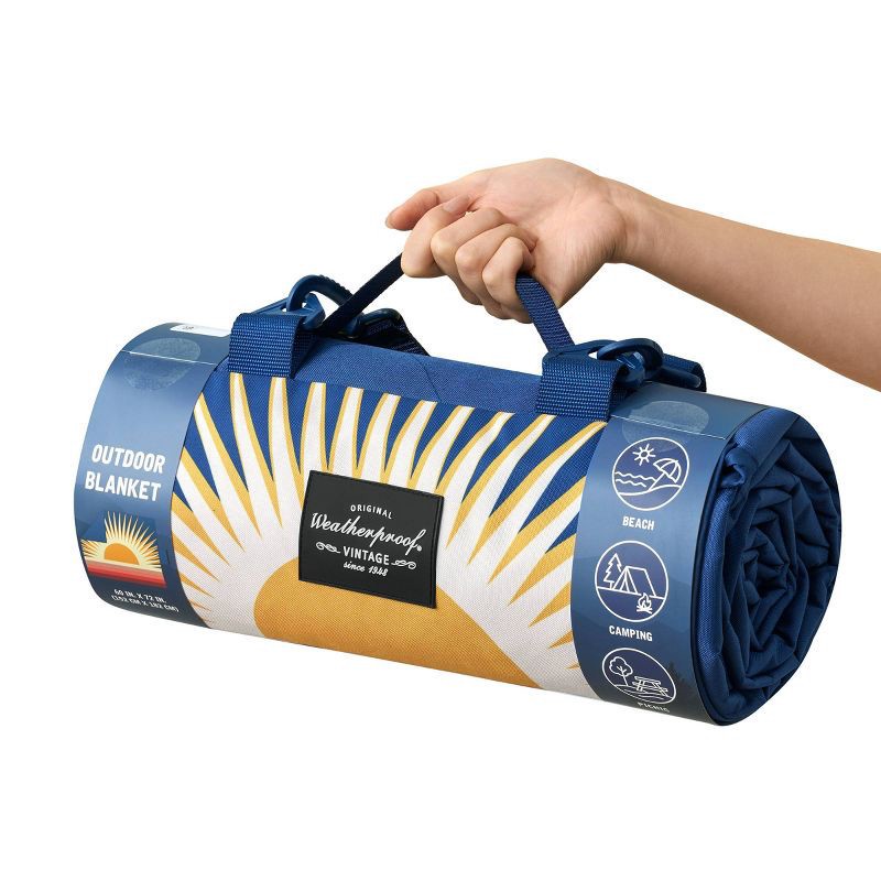- Weatherproof Vintage Outdoor Picnic Blanket with Strap & Velcro Closure, Roll-Up Beach or Camping Blanket, Sun Print, 60"x72"