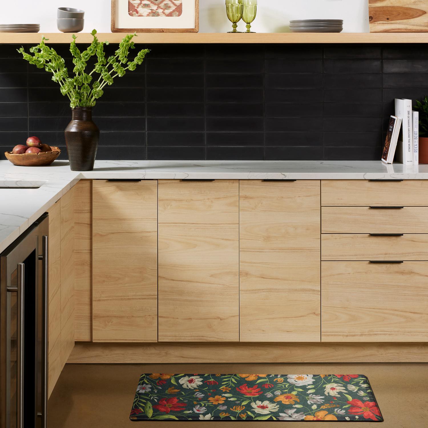 Loloi Moody Floral Double Sink Kitchen Comfort Mat, 18 In X 48 In, Black Multi