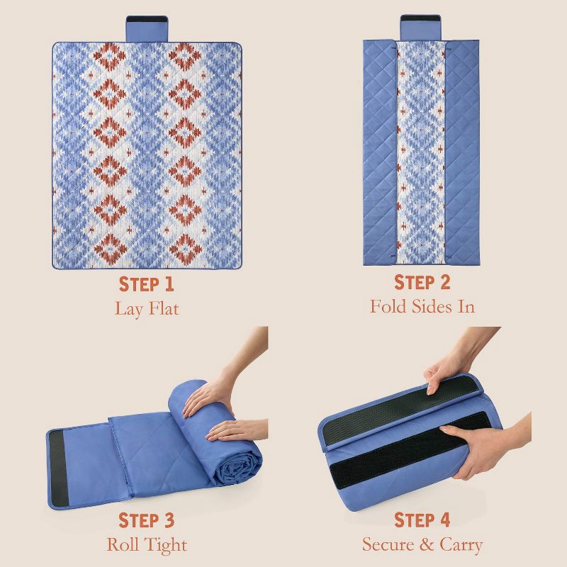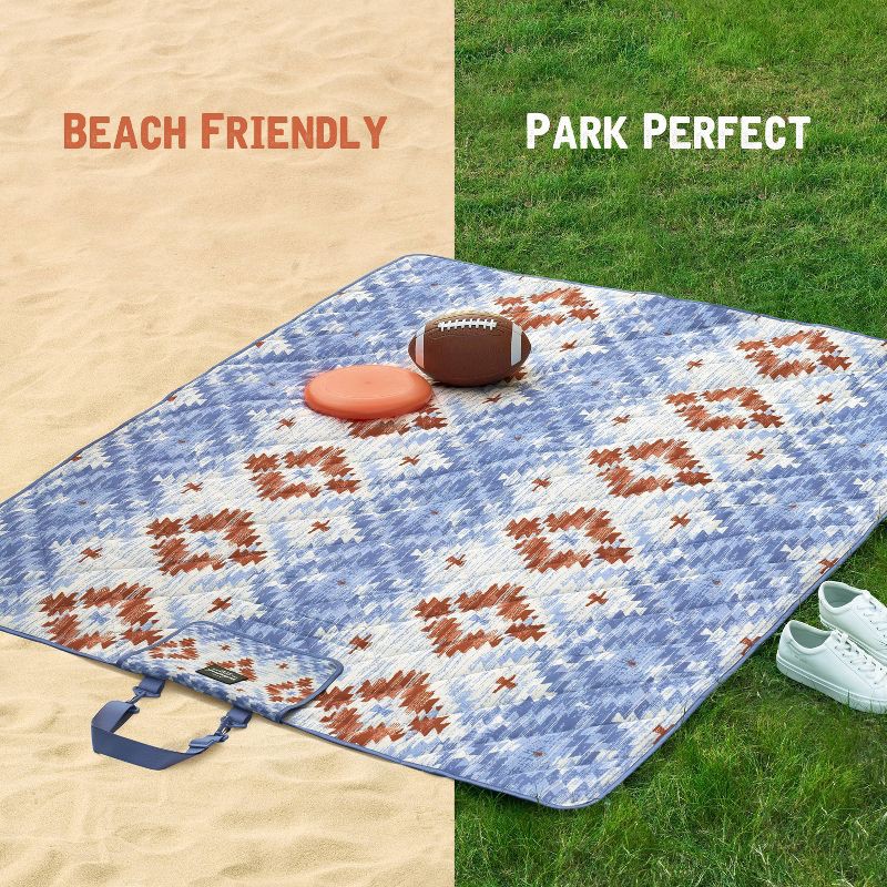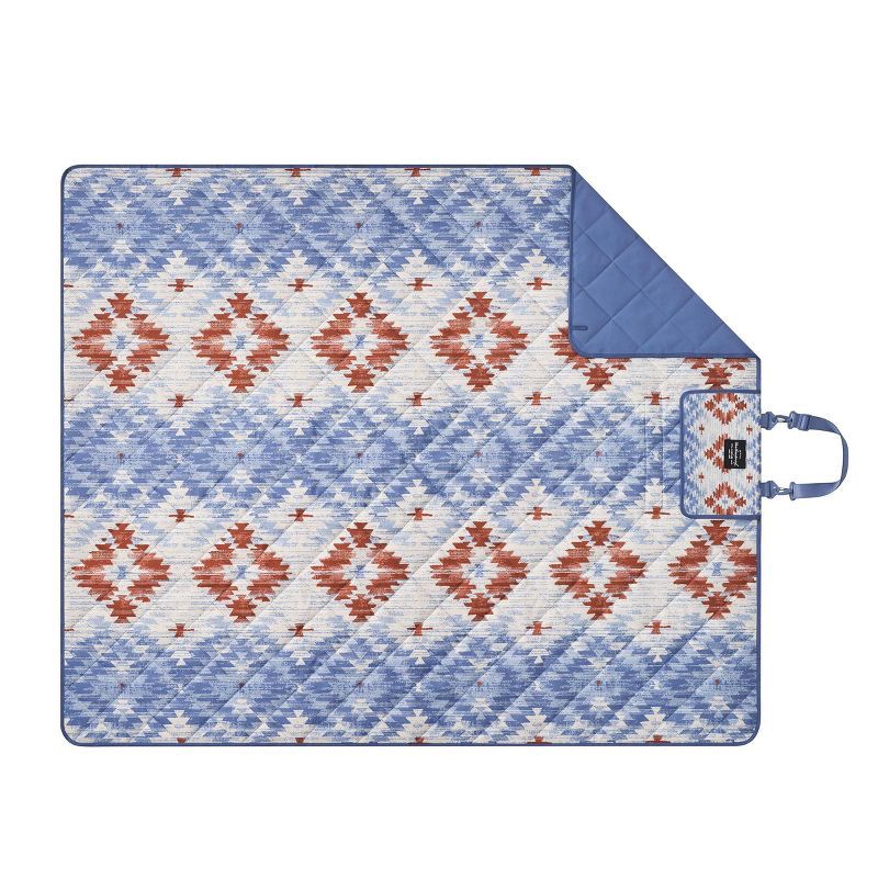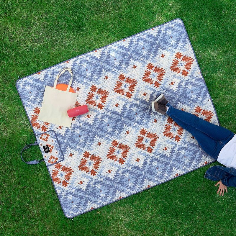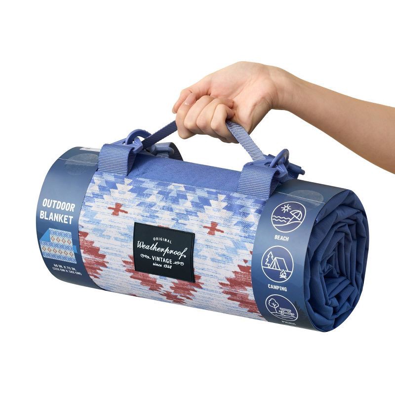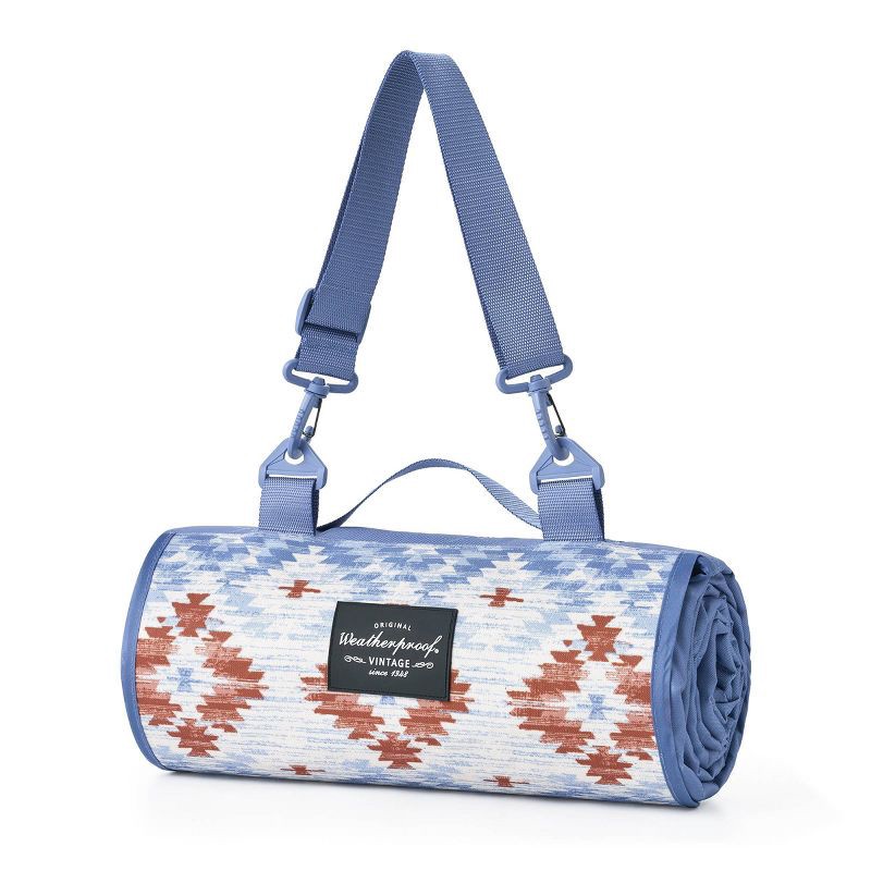 - Weatherproof Vintage Outdoor Picnic Blanket with Strap & Velcro Closure, Roll-Up Beach or Camping Blanket, Blue Diamond Print, 60"x72"
