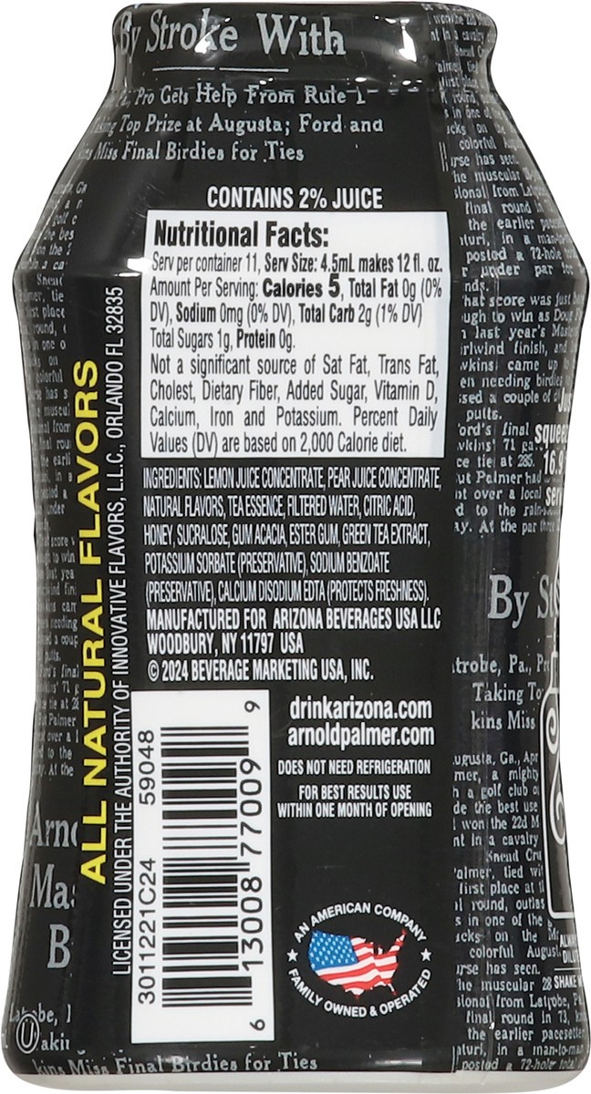 Enjoy everything you love about AriZona Arnold Palmer Half & Half Iced Tea Lemonade in a convenient liquid water enhancer to take on-the-go. AriZona Arnold Palmer Half & Half Iced Tea Lemonade Liquid …