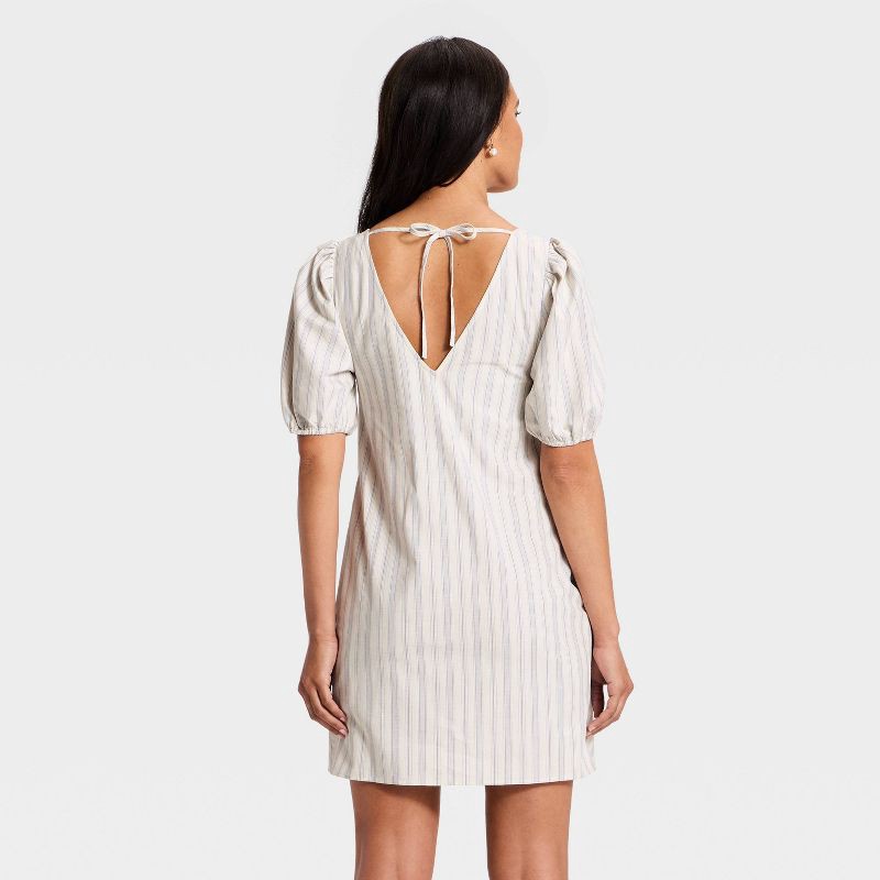 Women's Puff Sleeve Mini A-Line Dress - A New Day™ Cream Striped M