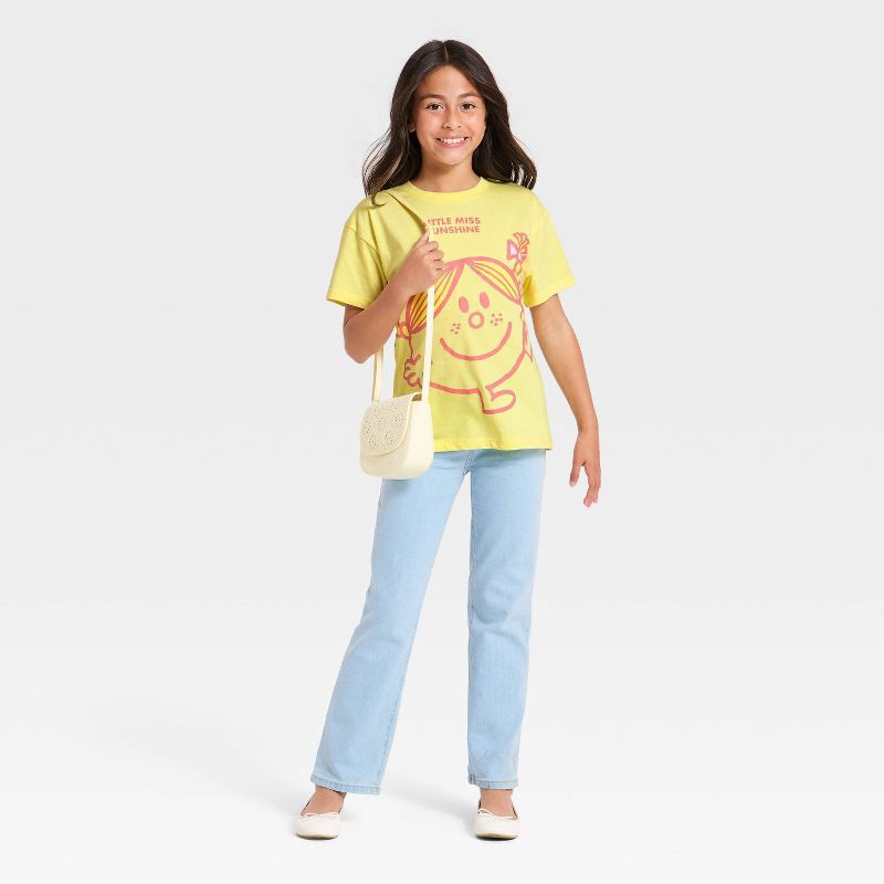 Girls' Little Miss Sunshine Oversized Front and Back Short Sleeve Graphic T-Shirt - Yellow L