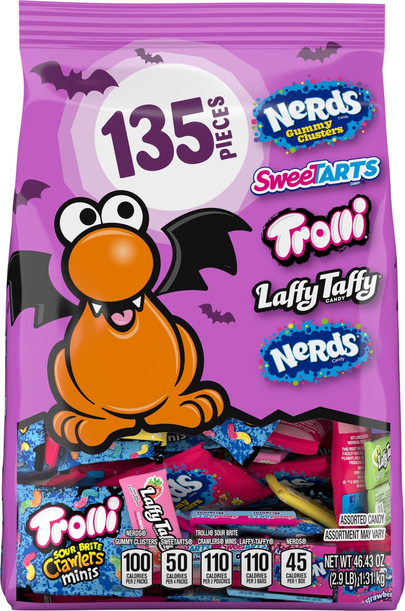 Get ready for Halloween with this ghoulish mix of ghostly goodies! Each bag contains 135 individual pieces of fan-favorite candies, including NERDS Gummy Clusters, SweeTARTS Originals, Trolli Sour Bri…