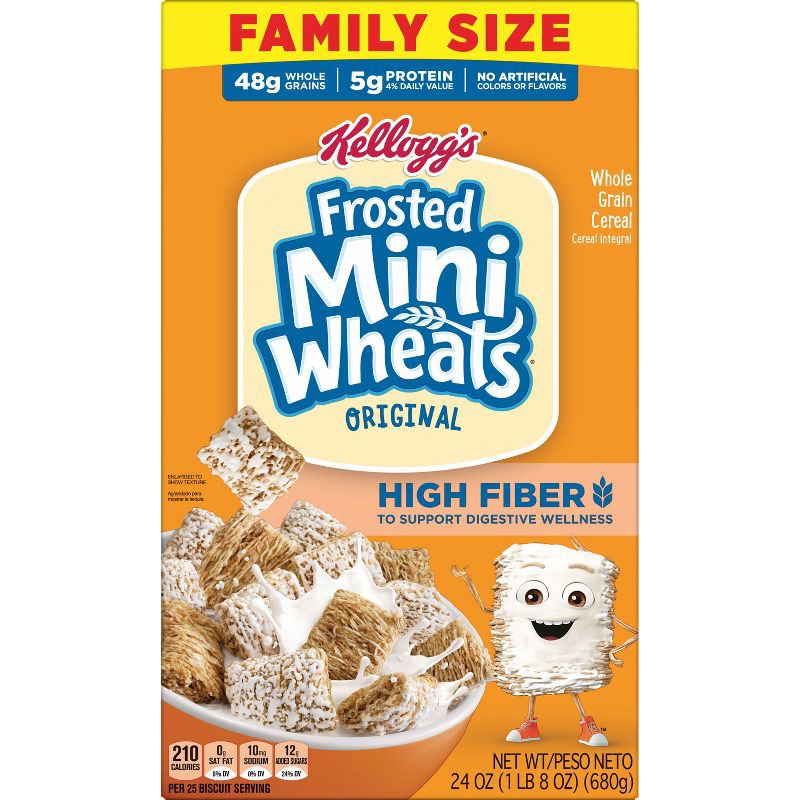 • WHAT YOU GET: Includes one 24 oz family-size box of Kellogg's Frosted Mini-Wheats cereal; Shelf stable; Instant and ready to eat