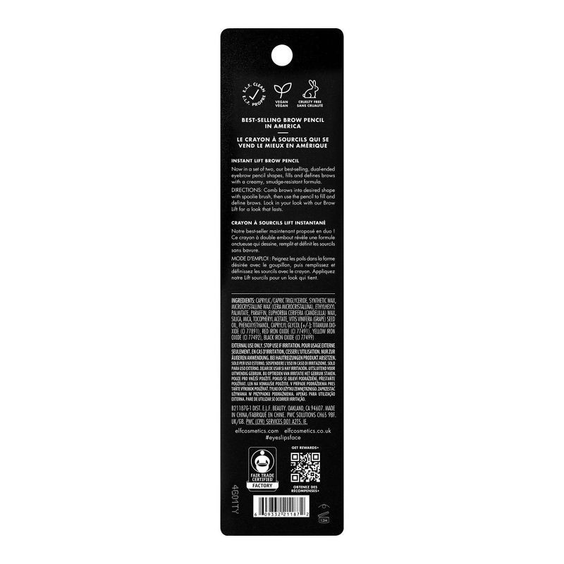 Never run out of your favorite eyebrow pencil when you stock up with a two pack! The e.l.f. Cosmetics best-selling, dual-ended Instant Lift Brow Pencil features a fine precision tip to smoothly applyi…