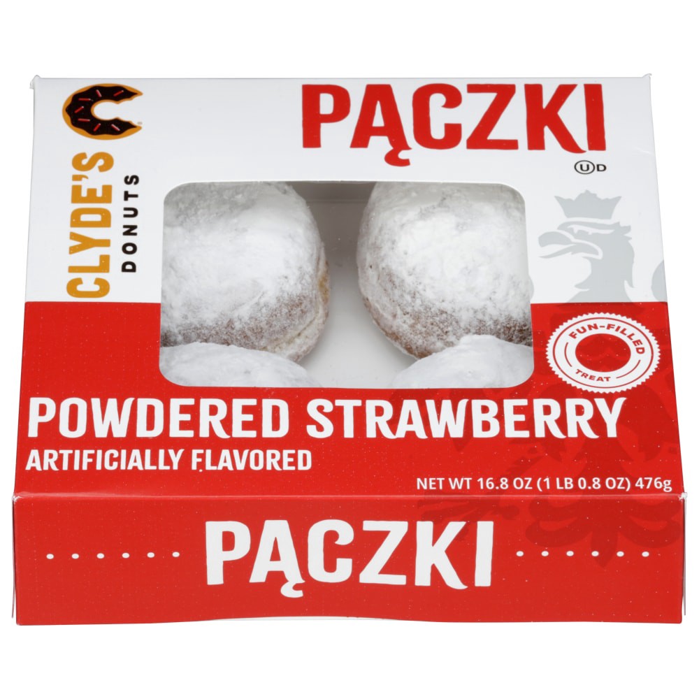 Traditional Polish pastries filled with strawberry and finished with a light powdered sugar coating.Arrives pre-packaged with Clyde's Donuts branding and labeling, ready to go on shelves.Designed for …
