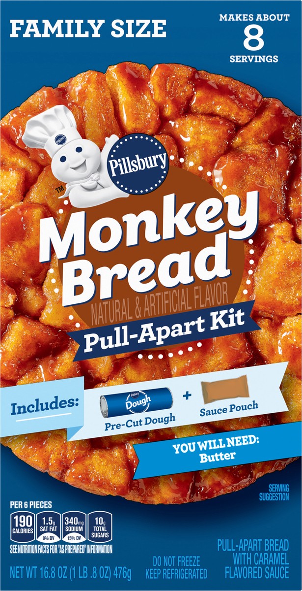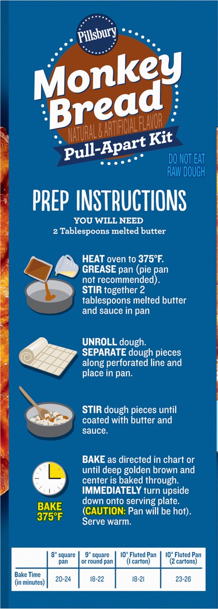Prepare a delicious, shareable, crowd-pleaser in minutes with Pillsbury Monkey Bread Natural and Artificial Flavor Pull-Apart Kit. This family size pull-apart bread kit comes with pre-cut dough and ca…