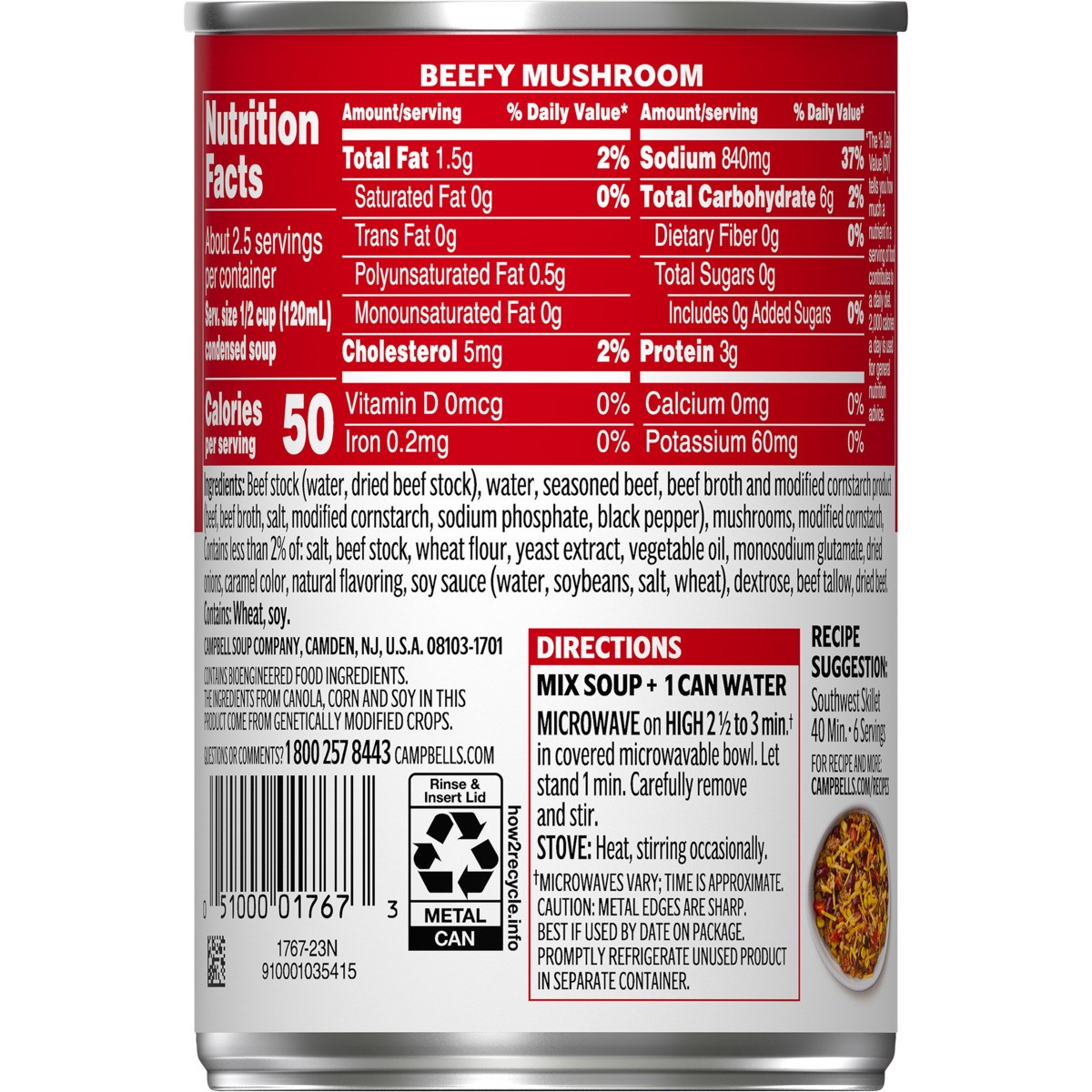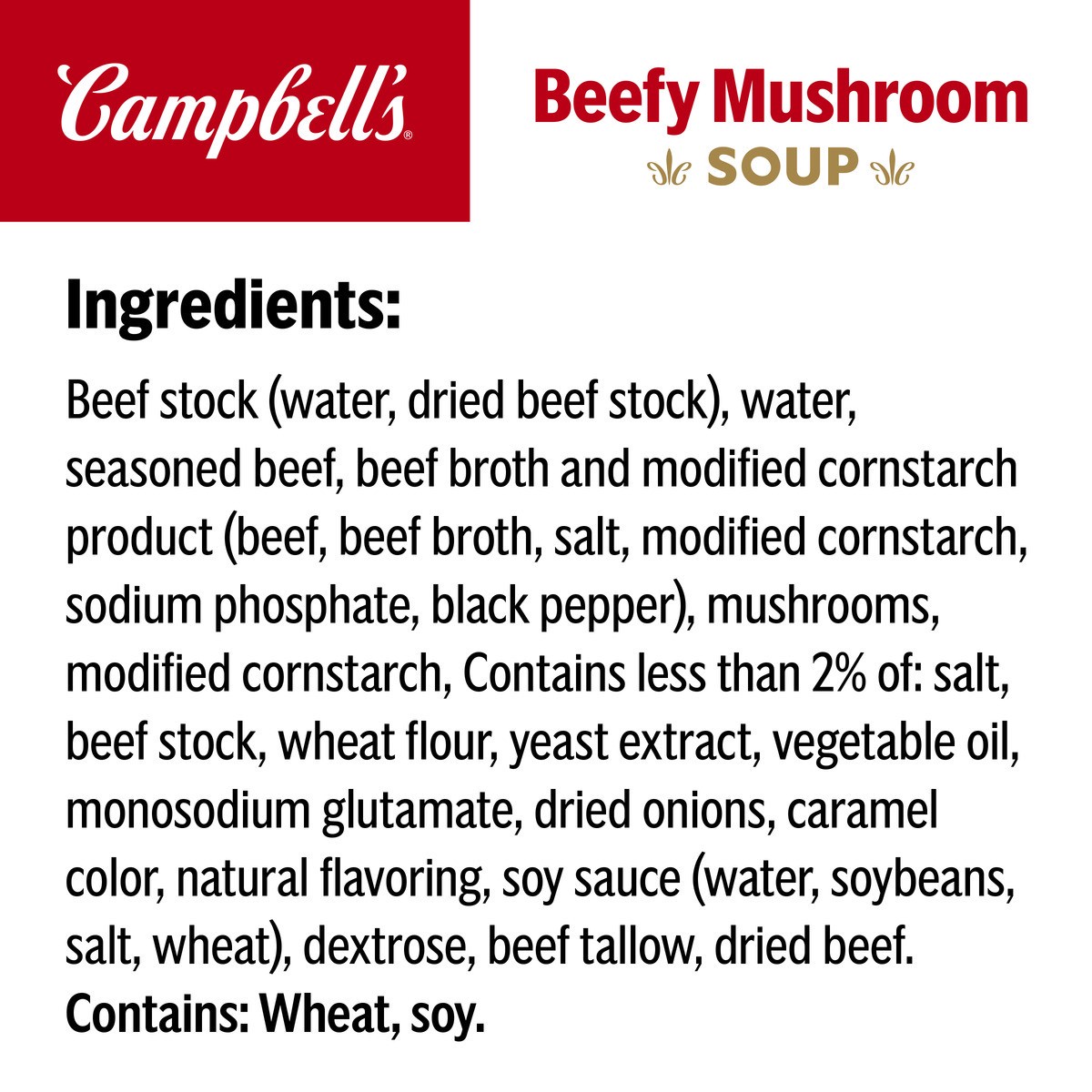 Creamy, comforting, and endlessly versatile, Campbell''s Beefy Mushroom Soup brings rich, savory flavors to every bite. Made with beef stock, seasoned beef and tender mushrooms, its velvety texture cr…