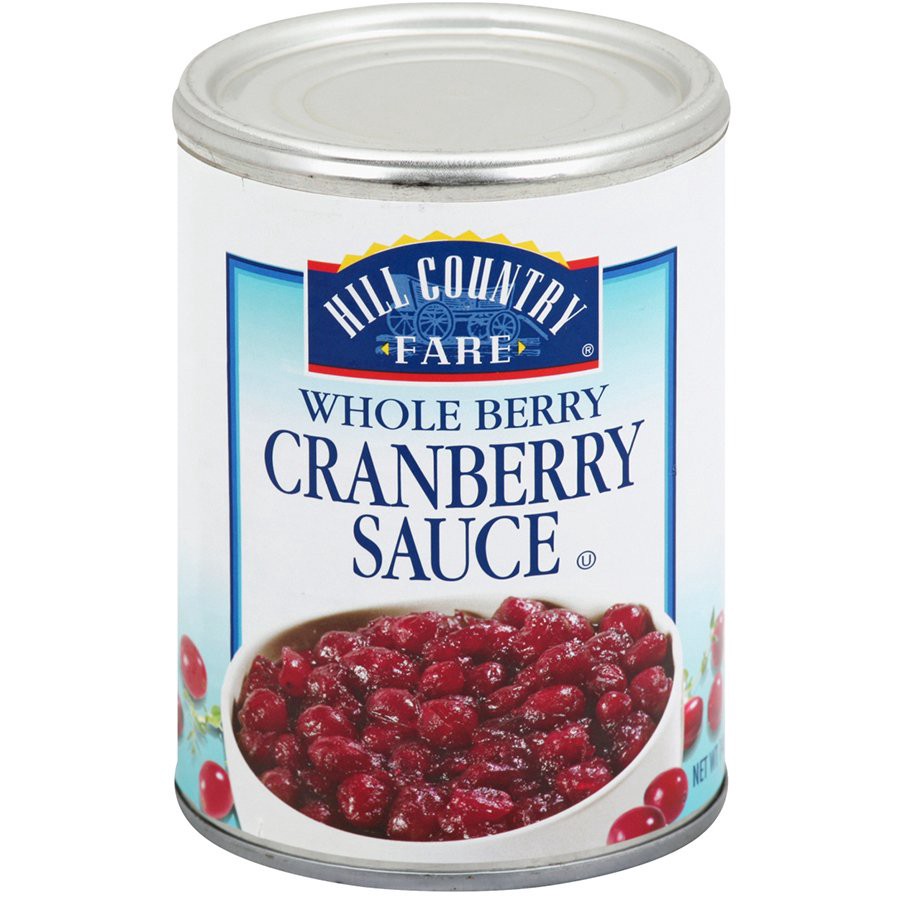 When it's turkey time, pick up some Hill Country Fare Cranberry Sauce. Made with whole cranberries, it's a classic Thanksgiving sauce that tastes great with many types of meat. Try some with roast chi…