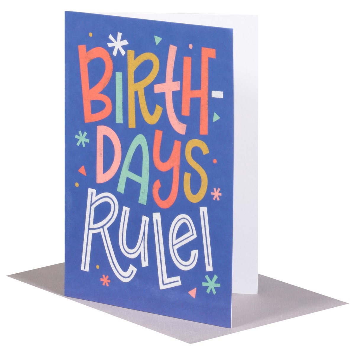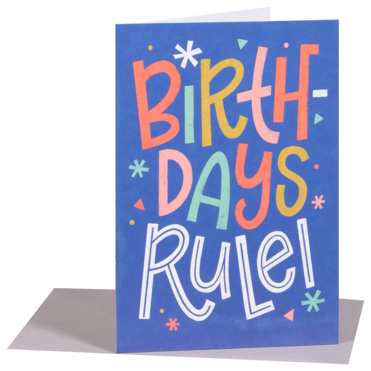 Tell them how awesome you think they are with a super fun birthday card. Featuring a bold, multicolored lettering design of the words “Birthdays Rule!” on the outside and a nice compliment on the insi…