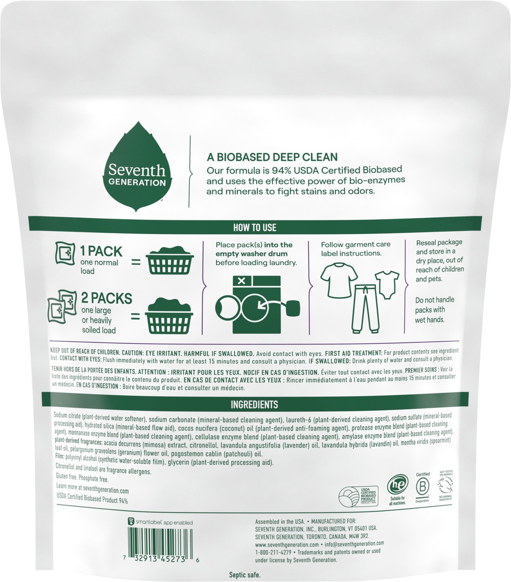 Meet Seventh Generation Lavender Laundry Detergent Packs: the everyday laundry superhero you've been looking for. Need to fight tough stains? Our 94% USDA Certified Biobased formula works in all water…
