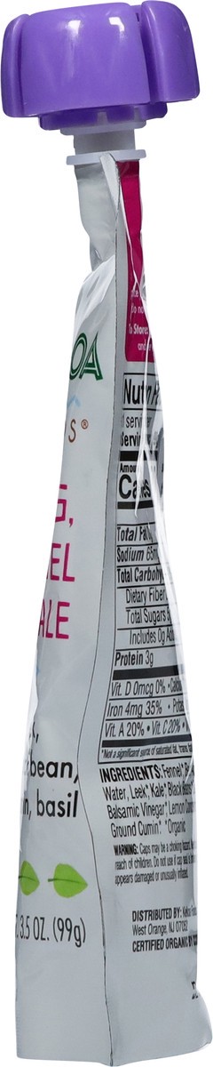 Fennel (Organic), Beet (Organic), Apple (Organic) Water, Leek (Organic), Kale (Organic) Black Beans Basil (Organic), Balsamic Vinegar (Organic), Lemon Concentrate (Organic) Ground Cumin (Organic).