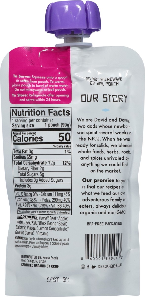 Kekoa Foods Organic Beets, Fennel & Kale Baby Food 3.5 oz