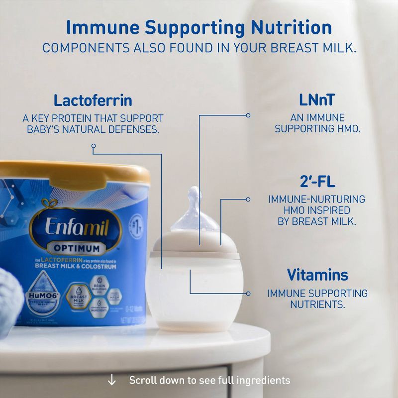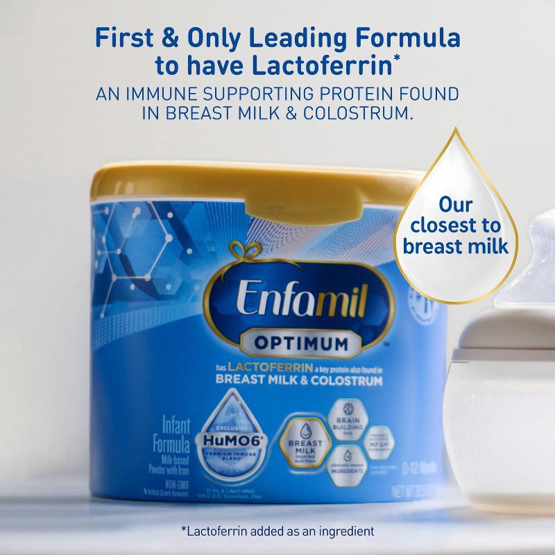 - OUR CLOSEST FORMULA TO BREAST MILK: Enfamil Optimum is the first and only leading baby formula to include lactoferrin, a key immune-supporting protein found in colostrum and breastmilk.