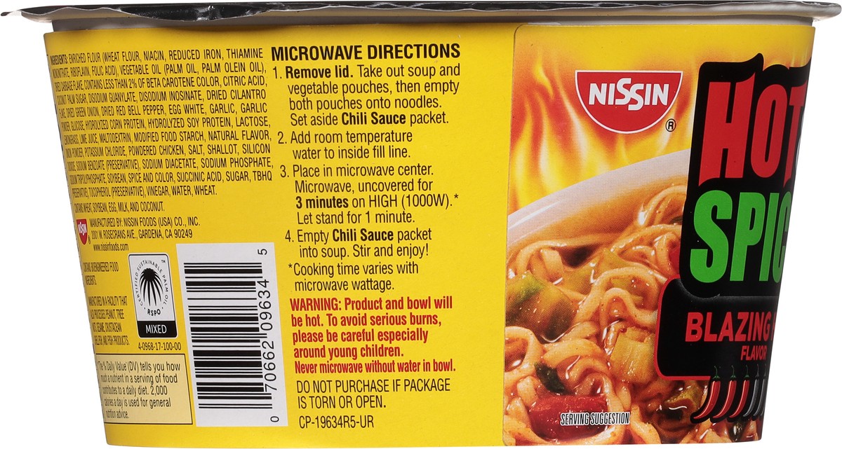 Nissin Bowl Noodles Ramen Noodle Soup Hot & Spicy Super Picante Flavor - 3.26 Oz