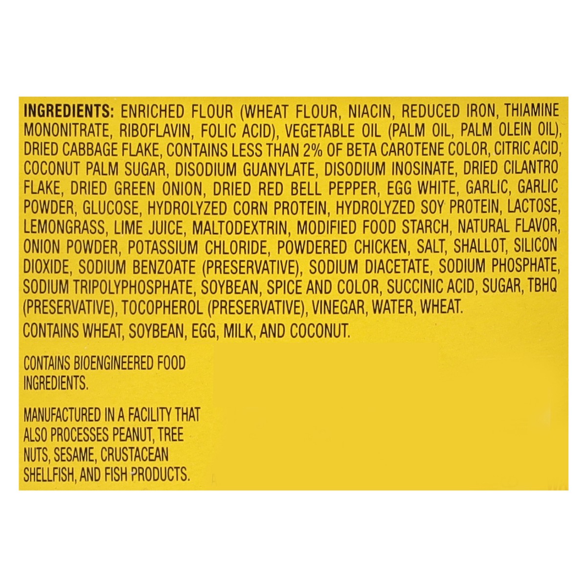 Enriched Flour (Wheat Flour, Niacin, Reduced Iron, Thiamine Mononitrate, Riboflavin, Folic Acid), Vegetable Oil (Palm Oil, Palm Olein Oil), Dried Cabbage Flake, Contains Less than 2% of Beta Carotene …