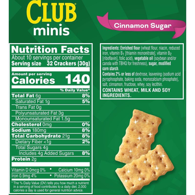- Includes 1, 11oz limited-edition box of ready-to-eat Club Minis Cinnamon Sugar crackers; Packaged for freshness and great taste