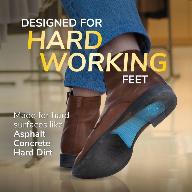 - The only extended gel cushioning that reduces the impact & shock to muscles & joints from working on hard surfaces.