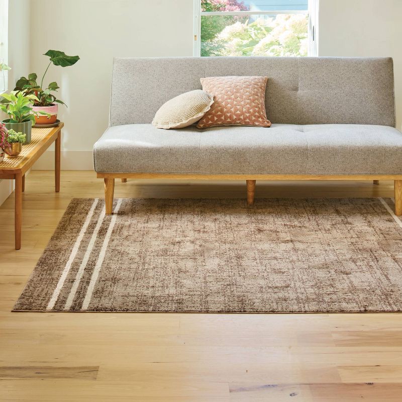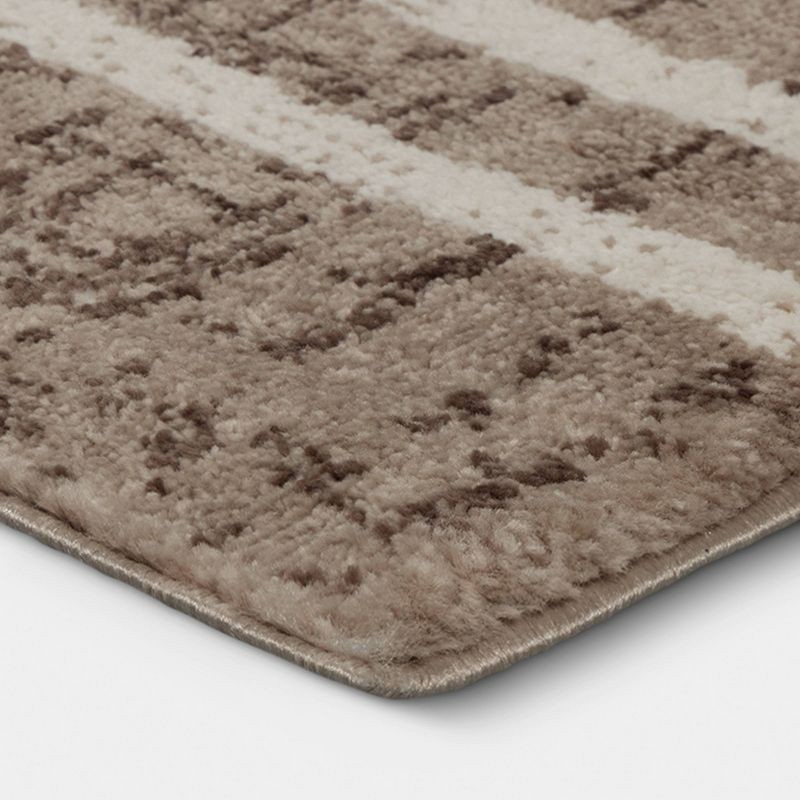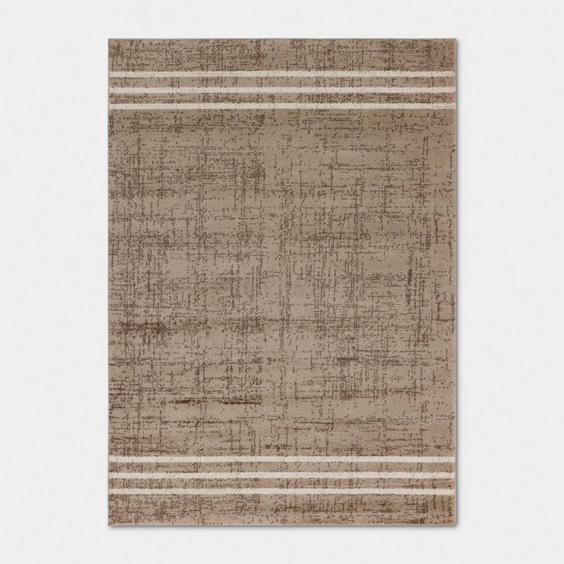 Transform your home aesthetic with this American Roots Border Striped Area Rug from Threshold™. This low-pile area rug features three cream‑colored stripes along the border, complemented by a distress…