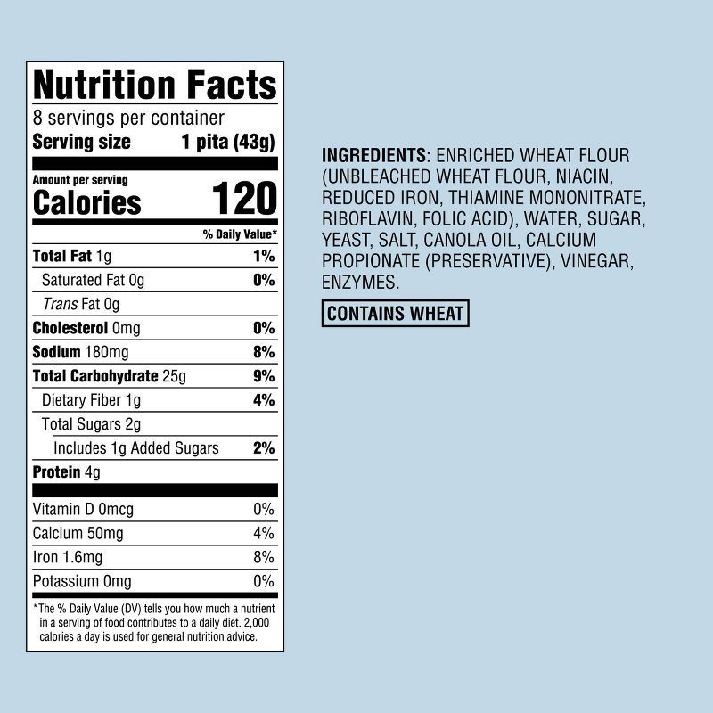 ENRICHED WHEAT FLOUR (UNBLEACHED WHEAT FLOUR, NIACIN, REDUCED IRON, THIAMINE MONONITRATE, RIBOFLAVIN, FOLIC ACID), WATER, SUGAR, YEAST, SALT, CANOLA OIL, CALCIUM PROPIONATE (PRESERVATIVE), VINEGAR, EN…
